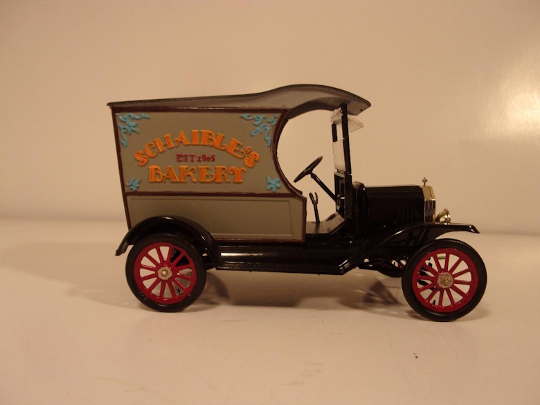 Now the story takes a different turn. In that ad, the name of the person to contact at Pyro regarding the "Beach Buggy" was "G. Schaible". I confess that I wouldn't know G. Schaible from Santa Claus, but eventually...later...that name would have significance. By the mid sixties, Pyro was offering multiple series of 1/32 scale models of antique and vintage vehicles. One interesting vehicle was a 1915 Ford Model T Panel truck, a "pie wagon". The name on the side of the truck was "Scheible's Bakery". Okay! Made sense. "G. Schaible", contact person in the VW beach buggy ad, was obviously a Pyro employee, so using his or her name on the Ford panel truck may have been a tribute to a valued employee, or simply a way to add realism to the model, rather than using a generic or fictitious business name.