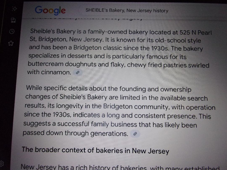 Schaible's bakery? Perhaps a long running family business from which the Pyro employee was descended? So I turned to the internet, typed in "Scheible's Bakery, New Jersey" (since Pyro was in New Jersey), and sure enough there was information on the historic family owned New Jersey bakery.