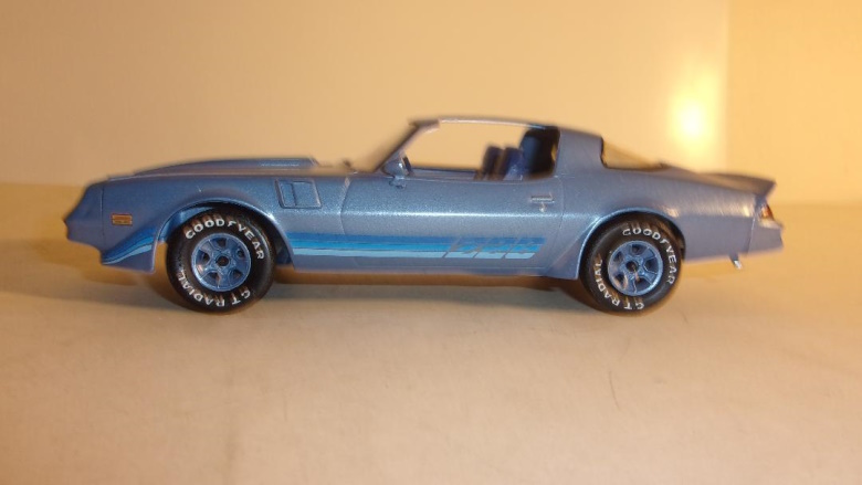 June 7, 2023 Recently Reissued Revell 1981 Camaro Z28 Copyright date 2022, released in 2023, the Revell kit # 14526 is molded in white plastic, made in Poland - not China - and represents a T-Top 1981 Camaro Z28 coupe. It is, as was its '80s issued predecessor, a snap together kit, with opening hood, reasonably convincing representation of an engine, and under hood detail, as well as interior and chassis detail, but the highlight of this new kit has to be the decal sheet. It includes a choice of four different colored stripe packages; this of course translates into multiple paint color choices for those who wish to replicate a specific car or color. For various reasons, some modelers overlook "snap kits"; it would be a mistake to do so in this particular case, especially if one is a fan of Camaros or of '80s cars.