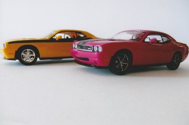 Collectors of “Dealer Promotional” scale model cars have been disappointed in recent years with the seeming demise of this ancient and venerable aspect of our hobby. After toy cars, but long before plastic model kits, the promotional models, commonly called promo’s, were what automobile enthusiasts sought to acquire and admire. Originally intended as a sales aid and/or advertising medium for the auto industry, they spawned an industry of their own due to their widespread acceptance by “kids” of all ages who loved cars. They appealed to drivers and those who were too young to drive. With the automobile industry being the primary customer for these models, and the availability of other mediums which supplanted, and negated the need for, promo’s, they all but faded from the scene. Having been in continual annual production since 1948, it was indeed disappointing to long time collectors who could no longer add accurate scale models of the new cars to their collections. When the auto industry ceased ordering these models, it could have spelled the end, but it didn’t. Some dedicated individuals recognized the “need” for and interest in this type of scale model and kept them alive. In recent years the variety and quantities have been much smaller, and the prices much larger, but we could still add to our collections if we wanted to. Both AMT and Revell in various years offered limited quantities of Corvettes as promo’s in the late ‘90s and into the new millennium. Despite being Corvettes only, there were various colors, body styles, and models of the marque offered. Then Tom Lowe came along to inject new life into various aspects of the model hobby. In 2008 the new Challenger was offered, at the behest of Chrysler Corporation, as a promotional model. This was a “limited run” of 7,000 pieces, according to the box. They were not advertised, showing up on eBay mostly, and were gone fairly quickly. They still appear on eBay now and then. The only color offered was orange. Since then, Corvette promo’s have been “on again off again”, the last annual production bring 2007. We were told there would be no more. Then, after the fact, some more were produced in limited numbers of the 2008, 2009, and 2010 Corvettes. Now, Tom Lowe strikes again! Calling them “predecorated”, and “Showroom Replicas”, rather than “promotionals”, AMT is offering four models of the 2010 Challenger: Detonator Yellow R/T Classic, with black side stripes, and black interior; Plum Crazy R/T Classic with white side stripes, and two tone black & white interior; B5 Blue, with black hood graphic and black interior; Furious Fuscia, with black hood graphic, and two tone black & white interior. These four are more readily available than the Corvette (and rumored new Camaro) promos, which continue to be obscure and from limited sources. There is cause for promo collectors, and anyone who doesn’t build kits, but wants to continue a collection of annual new cars, to rejoice. Thanks, Mr. Lowe! “Keep on keepin’ on!”.