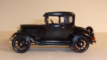 1929 Ford Model A coupe built as gift for local friend, combines 1/25 scale AMT '29 roadster and 1/24 scale Monogram '30 coupe - and much plastic surgery. |
