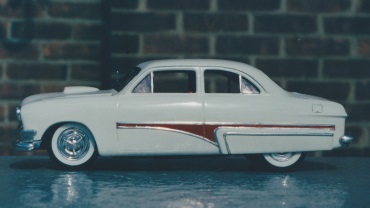 ![]() Custom '50 Ford Tudor - roof lengthened, modified to replicate photos, built for local customer. Made from AMT '49 Ford Club Coupe. (From the early days... ) |