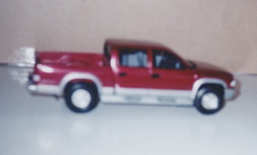 ![]() Built for local customer from snap-together Dodge Ram kit, converted to four wheel drive, cap fabricated, model painted to match customer's truck. (From the early days... but more recent.) |