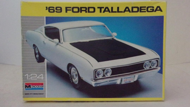 While most recognize that the Talladega was Ford's weapon in the NASCAR "Aero Wars", what follows are some facts that by now most may be aware of and /or familiar with, but for the few who may not, I present the 1969 Ford Torino Talladega "Twins". They are fraternal, and not identical, twins. In 1968, and again in 1969, AMT offered the Torino GT Sportsroof (fastback). Later AMT offered the '69 Torino Cobra. Then in 1990, AMT offered the 1969 Torino Talladega. Coincidentally, or perhaps intentionally, also in 1990, Monogram offered the 1969 Torino Talladega. There the similarity ends. The most obvious difference, instinctively known to serious model builders is that AMT produced in a scale of 1/25 actual size, while Monogram produced in the scale of 1/24 actual size. There are those among us who prefer one size over the other and/or one brand over the other, so they may automatically purchase their preference without realizing the differences between the two Talladegas is more than just the scale in which they were produced. The Monogram model, kit # 2912, represents the majority of the limited production Talladegas which Ford sold to the public. Those cars were offered in only three colors: Wimbledon white (as shown on the Monogram box cover), Royal Maroon, or Presidential Blue. Regardless of body color selected, all had black interiors, a bench seat in the front, and a column shifted C6 (automatic) transmission. The AMT model, kit #6889, depicts a yellow car on the box cover, and shows a white, bucket seat interior. The box art depicts an accurate, but one of a kind, '69 Talladega which was specially built exclusively for the (then) president of the Ford Motor Company, Semon "Bunkie" Knudsen. Bunkie's car was the only '69 Talladega to be so equipped: Yellow exterior, white interior with bucket seats and console, yet retaining the column shift for the automatic transmission. NOTE that the AMT kit has a 4 speed manual transmission attached to the engine. Fine if one wants to build a NASCAR or muscle car street version, but inaccurate for "Bunkie's car" which the box art represents. Thus, for any who may seek to do so, the two different models would allow the accurate assembly of legitimate variations, each with historical accuracy.