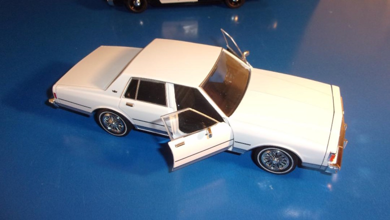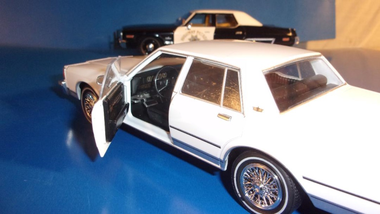 The newest family car to come to our attention is by Greenlight, right here in the good ole USA (what remains of it). The 1980 Chevrolet Caprice is very attractive in white, with wire wheel covers. It features opening front doors to reveal a black interior.